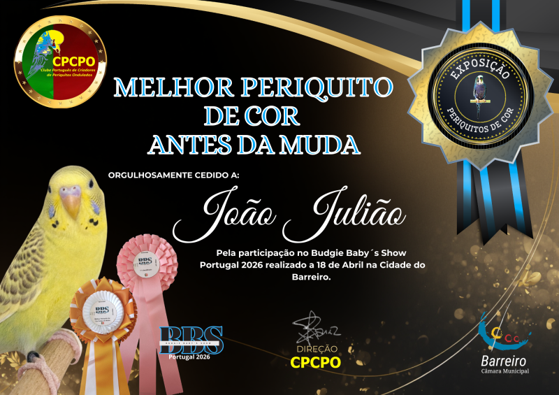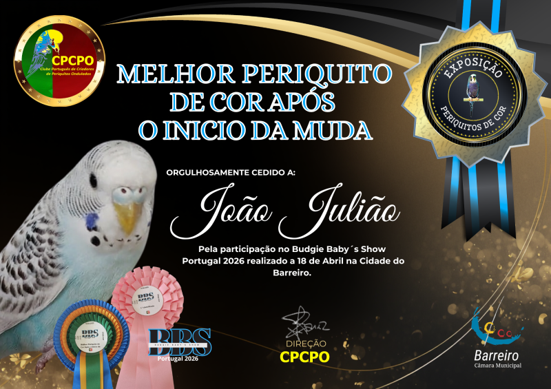 O CPCPO organizou o Budgie Baby’s Show Portugal 2026, uma exposição de Periquitos Ondulados bebés de Porte e de Cor, na antiga Escola Básica nº 4 do Barreiro no dia 18 de abril de 2026.